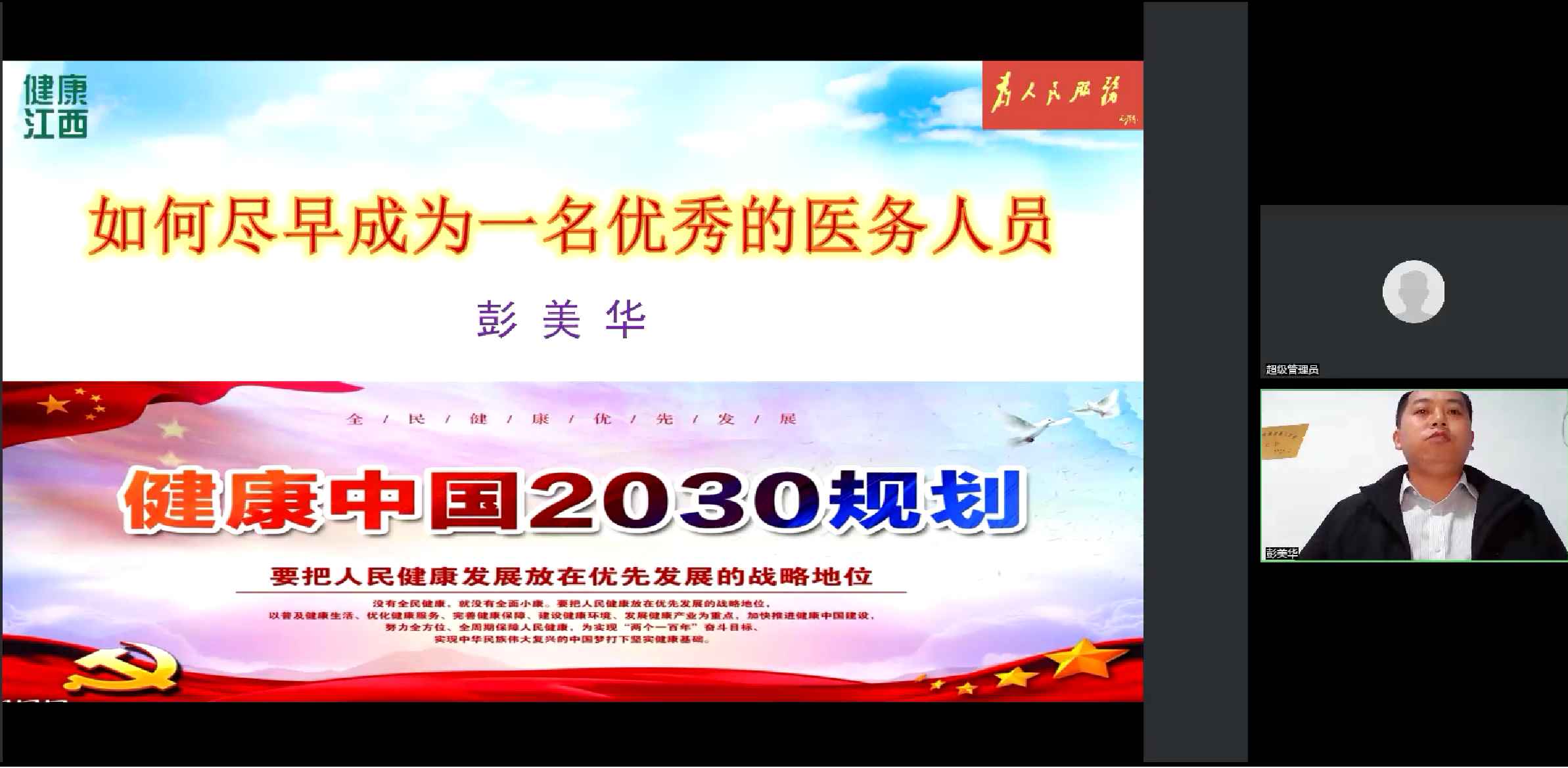 江中新闻网讯(通讯员 陶璐 刘泓岐)为拓展学术视野,营造浓厚的学术氛围。4月23日晚,由教务处主办,临床医学院承办的第六十七期云端中医大讲堂在腾讯会议平台进行线上直播。黎川县中医医院副院长彭美华做客本期讲堂。中医学院、针灸推拿学院、药学院等学院300余名师生在线参与了本次讲座。