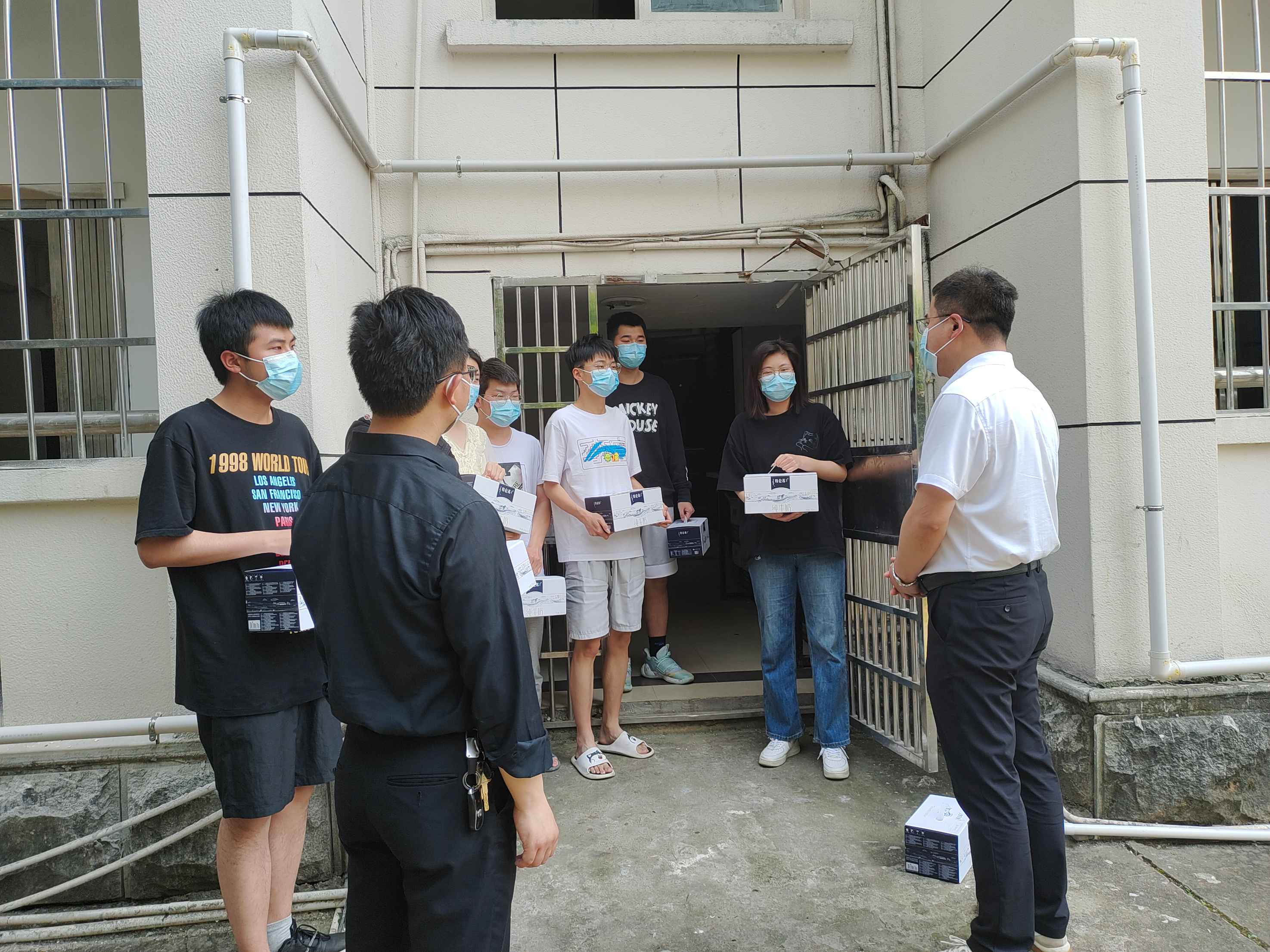 江中新闻网讯(通讯员 赖丽珍)5月15日下午,学院领导带领学院全体辅导员前往学校健康驿站,看望我院隔离留观学生,为隔离留观学生们带去最亲切的慰问。