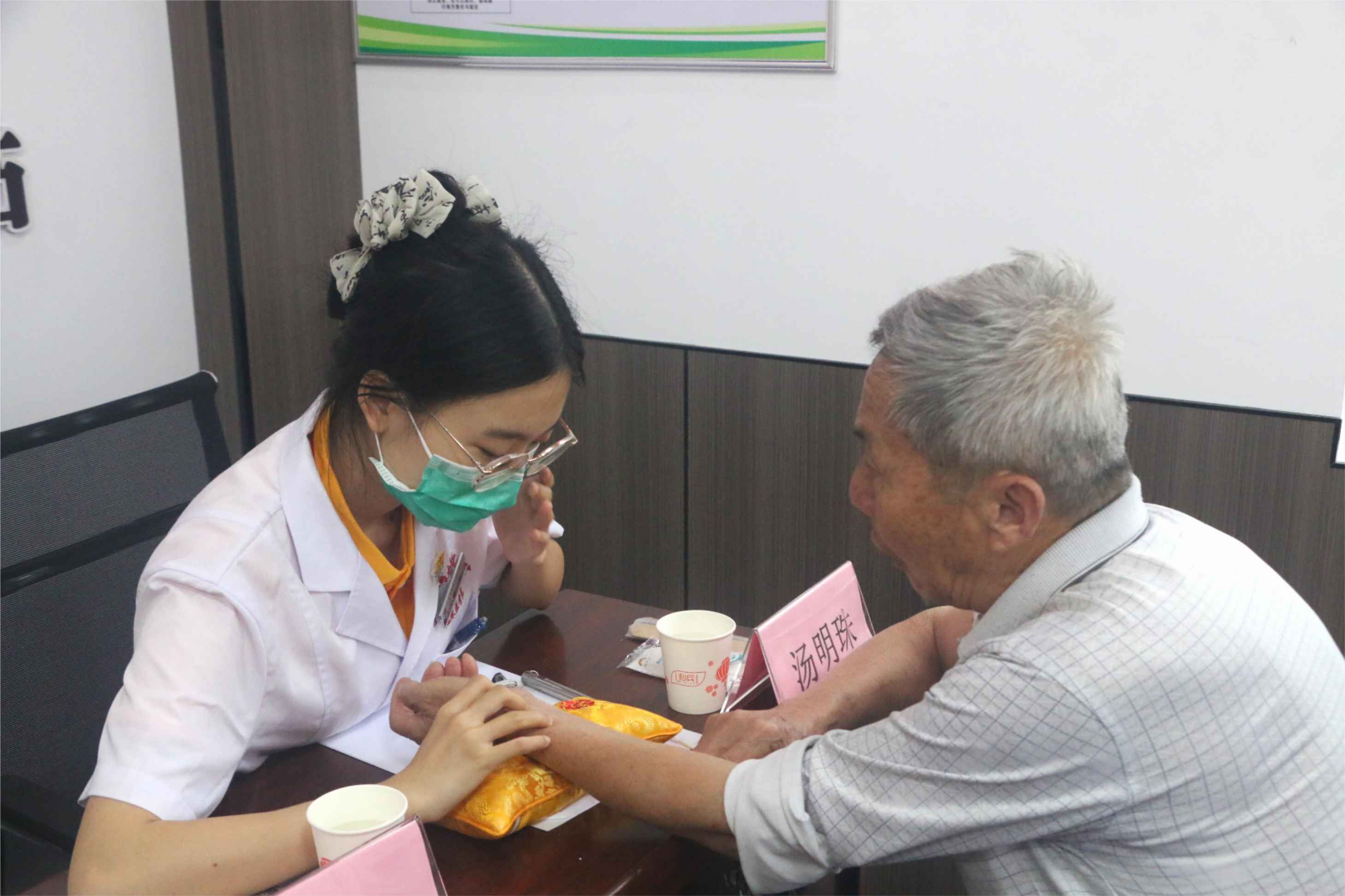 “医生,我最近老是觉得肩膀酸痛,是怎么回事?”实践队先后来到星子镇三角垅村杏林驿站、白鹿镇杏林驿站和泽泉乡朝阳社区等地开展义诊活动。由我院博士、硕士研究生组成的义诊团队开设了中医骨科、心血管内科、中医全科、中医外科等临时看诊台,为前来问诊的村民提供免费诊疗服务。义诊团队运用望、闻、问、切四诊法等特色诊断方法,辨证论治,以仁心关怀之态,耐心解答村民们的健康问题,并给出个性化的养生保健建议。