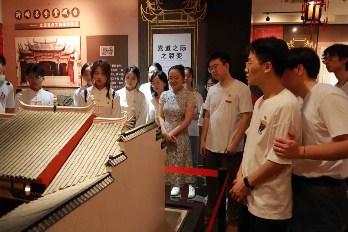 走进乐平中国古戏台博物馆,在讲解员的讲解下了解到赣剧和古戏台文化的发展和演变。这里不仅展现了中国传统戏曲文化,同时承载着红色精神。队员们通过参观学习,了解到古戏台在革命战争时期的特殊作用,以及戏曲工作者如何通过艺术形式宣传革命思想、鼓舞人民斗志,让队员们认识到文化思想的传播在红色革命时期做出的巨大贡献,增强文化自信。