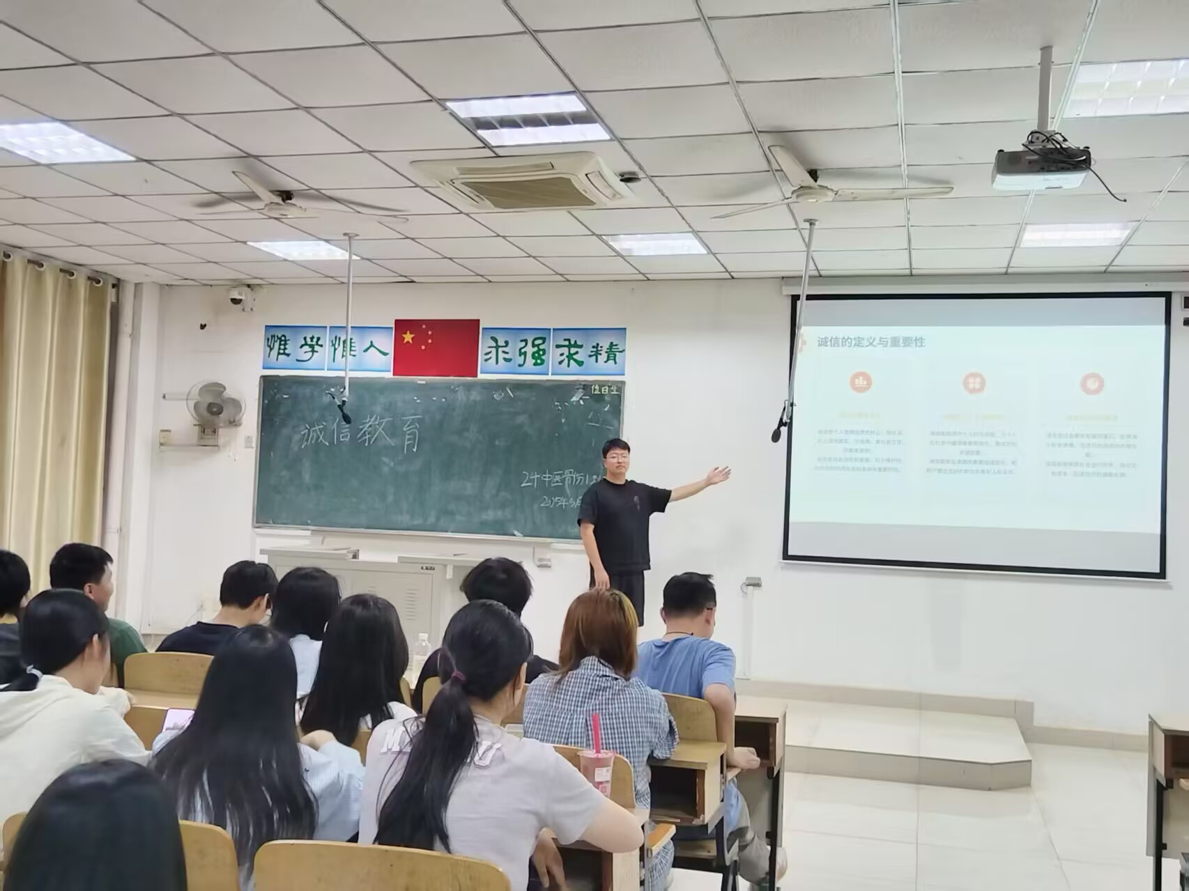 本次诚信教育主题班会融合资助工作、日常管理等内容开展,由三部分组成:一是开展诚信知识宣讲,由各班辅导员及生委对同学们进行资助政策讲解,引导学生诚信填报申请材料;二是宣传诚信榜样事迹,加强学生日常行为规范教育、考试诚信教育等;三是签订诚信承诺书,进行江西中医药大学生源地助学贷款学生诚信承诺书的现场签名。