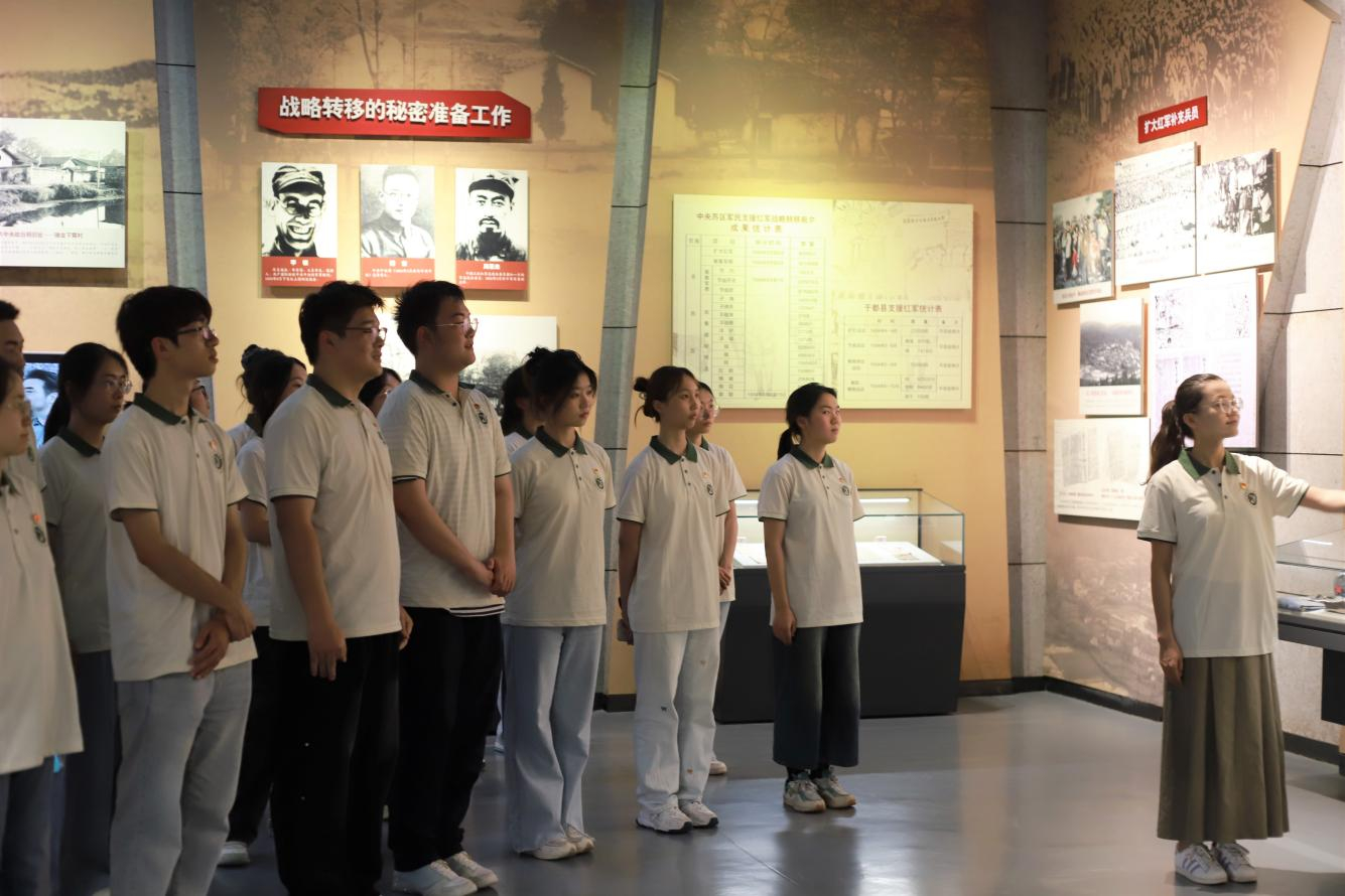 “在赣南革命老区,草鞋是红军战士最普通的装备。战士们穿着草鞋踏遍山河,走完二万五千里长征。”随着讲解员的讲解,同学们走进中央红军长征出发地纪念园,锈迹斑斑的农具、泛黄的劳动奖状、斑驳的长征日记再现了老一辈共产党员赤心擎炬、草履量天的奋斗历程,也让队员们更加坚信,只要传承长征精神,就没有翻不过的“雪山”,跨不过的“草地”。
