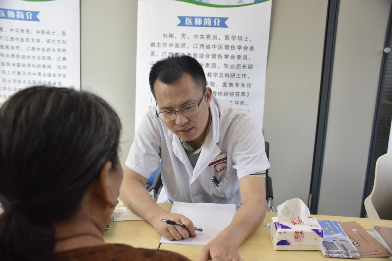 医生的手指静静地搭在居民的手挽上,仔细地辨别脉象。“你有哪里感觉不舒服吗?”“医生我感觉腰这里经常会痛。”在长天松康乐平颐养中心和洎阳街道天湖社区的活动室,居民们陆陆续续前来问诊。江西中医药大学附属医院的三名专家为居民们提供中医骨科、心血管内科和消化科等方面疾病的专业诊疗服务。“医生,扎完针之后,现在我感觉好多了,腰那里没那么痛了。”专家们运用望闻问切的方法进行诊断,并提供治疗建议和针灸疗法,耐心地回答居民们的疑问,给出最适宜的回答。