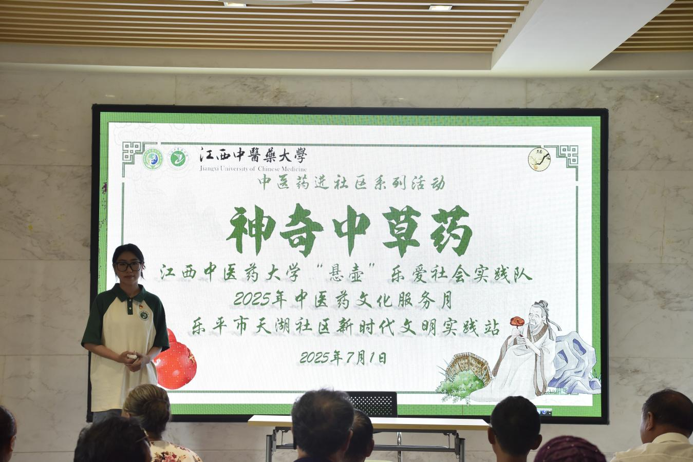 为庆祝中国共产党成立104周年,激励广大青年学子深入学习党的百余年奋斗重大成就,推动医疗技术人员深入基层,7月1日,江西中医药大学“悬壶”乐爱社会实践队携手江西中医药大学附属医院专家前往长天松康乐平颐养中心和洎阳街道天湖社区,聆听“光荣在党50年"纪念章获得者黄细文教授的党课,并为居民们提供针灸、推拿等特色中医服务和中医健康指导。