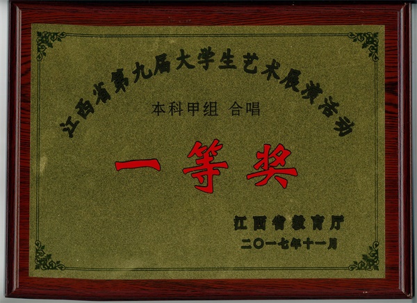 江西省第九届大学生艺术展演活动本科甲组合唱一等奖奖牌