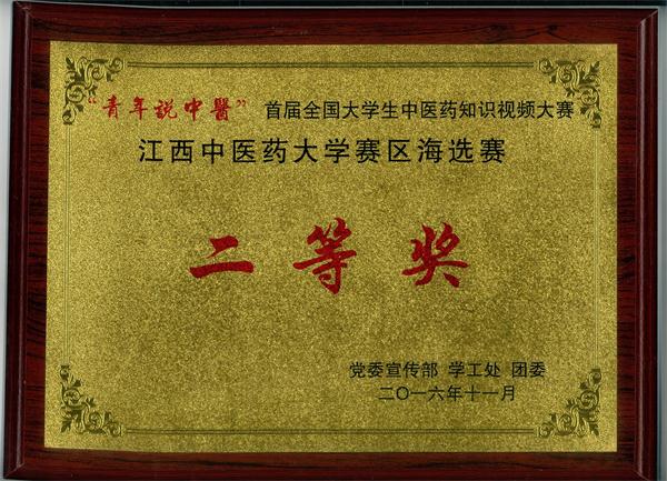 ‘青年说中医’首届全国大学生中医药知识视频大赛江西中医药大学赛区海选赛 二等奖 (2016年11月)