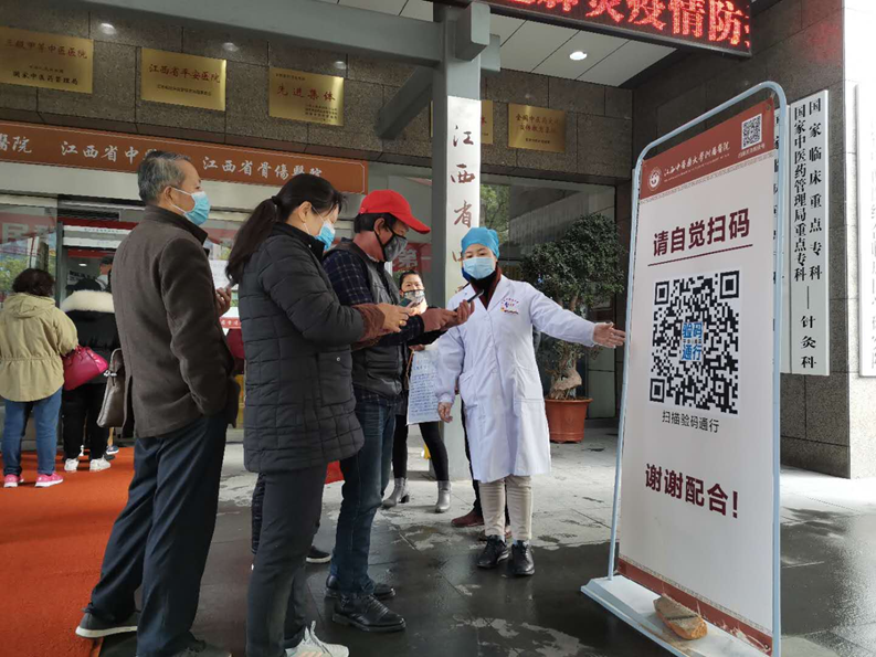 随着疫情的不断变化,南昌市疫情防控指挥部发布了南昌电子通行证二维码和轨迹查询,要求每一位通行人员均要查验。为了顺利实施扫码,龚美富带领门办全体出动,行政到一线指导患者扫码申领,面对每天数千的人流量,可谓是众人能识我,我难识众人,因为预检人员可能无暇抬头看清你的脸。