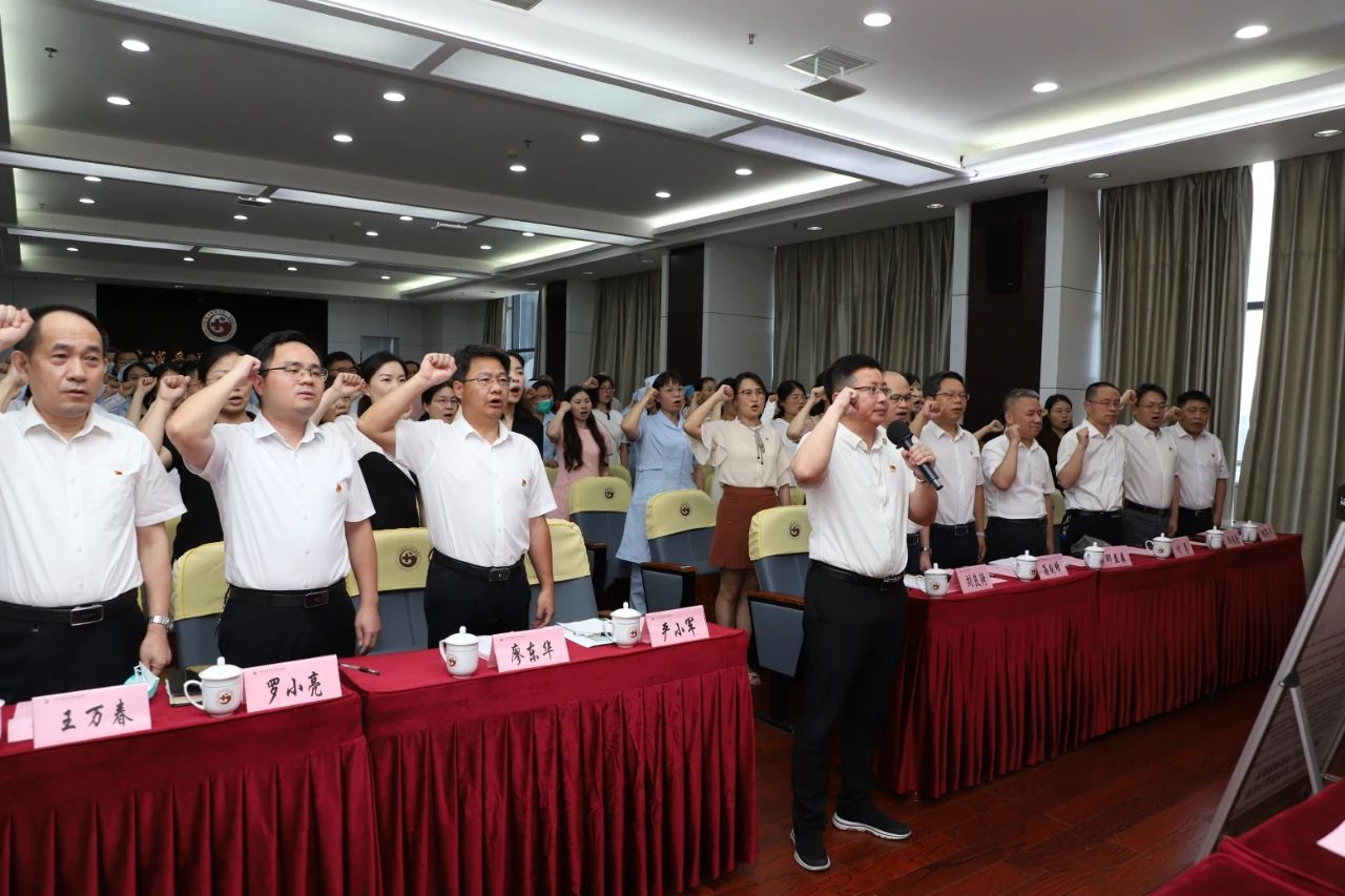 (学校党委委员、副校长、附属医院党委书记严小军带领新党员进行入党宣誓,老党员重温入党誓词)