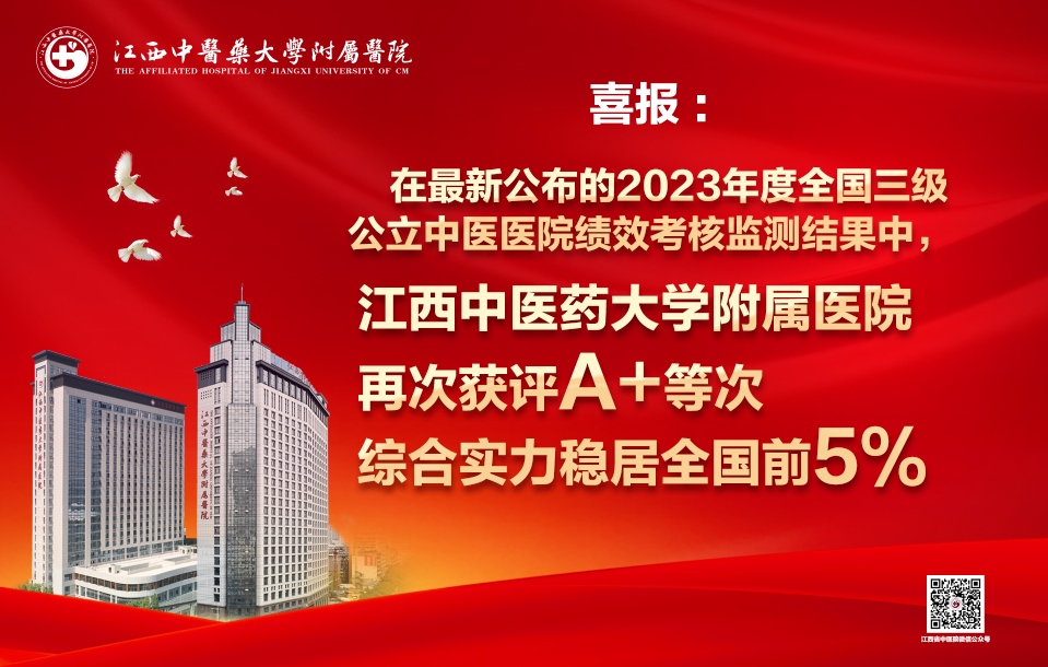 3月18日,国家中医药管理局公布2023年度全国三级公立中医医院绩效考核监测结果,江西中医药大学附属医院以优异成绩获评A+等次,综合实力稳居全国前5%,自2022年以来,我院连续两年“国考”成绩位列A+等次,标志着我院在中医药服务能力、管理效能及学科建设等方面持续位列全国第一方阵。