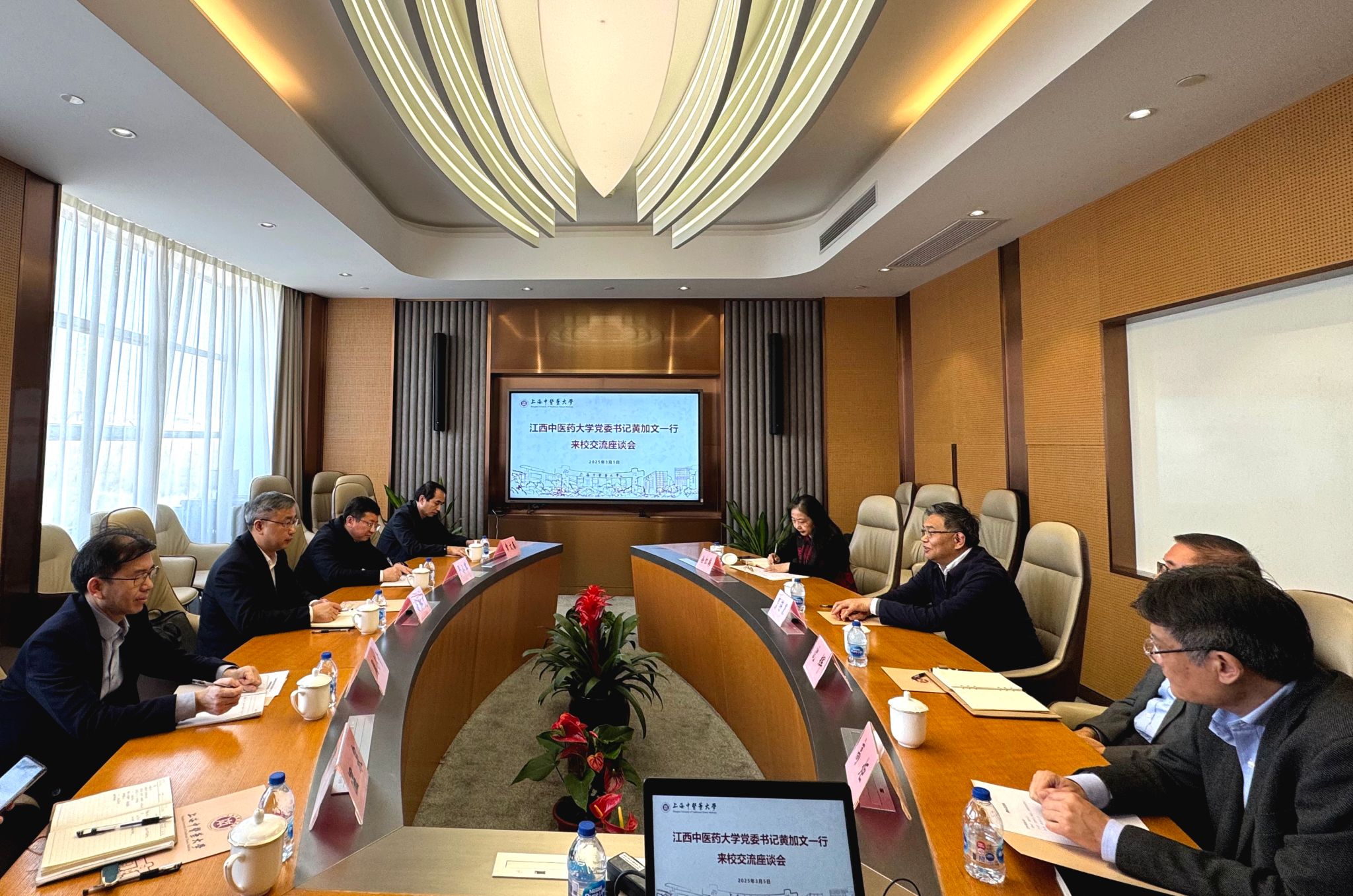 为了加快推进国家区域医疗中心建设项目——上海中医药大学附属龙华医院江西医院建设,3月21日,学校党委书记黄加文,学校党委委员、副校长、附属医院党委书记严小军等一行赴上海中医药大学及龙华医院考察交流,就国家区域医疗中心建设项目、学科建设、人才培养、科技合作等事项进行交流。上海中医药大学党委书记曹锡康,党委副书记沈辉,党委副书记、副校长孟煜,龙华医院院长陈昕琳等陪同。