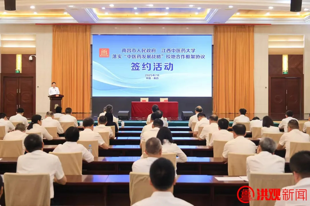 7月23日,南昌市人民政府、江西中医药大学落实“中医药发展战略”校地合作框架协议签约活动举行。省委常委、南昌市委书记、赣江新区党工委书记李红军见证签约。市长高世文,江西中医药大学党委书记黄加文致辞。江西中医药大学领导朱卫丰、章德林、陈焕文、朱根华、严小军、周志刚,市领导刘建军、赵捷、徐鹤飞、余红艳出席。