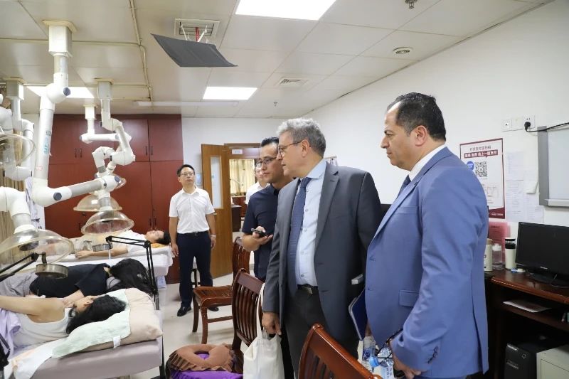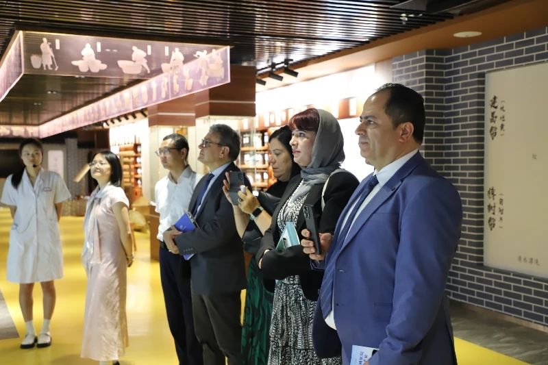 突尼斯代表团一行先后来到医院制剂中心、中药炮制技艺传承展示馆、中医特色技术门诊、药房等参观考察。