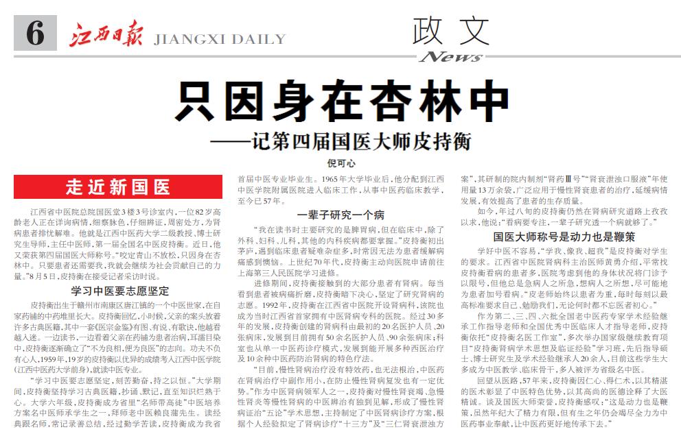 【江西日报】国医大师皮持衡:只因身在杏林中