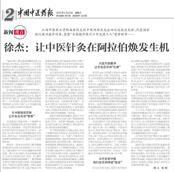 【中国中医药报】徐杰:让中医针灸在阿拉伯焕发生机