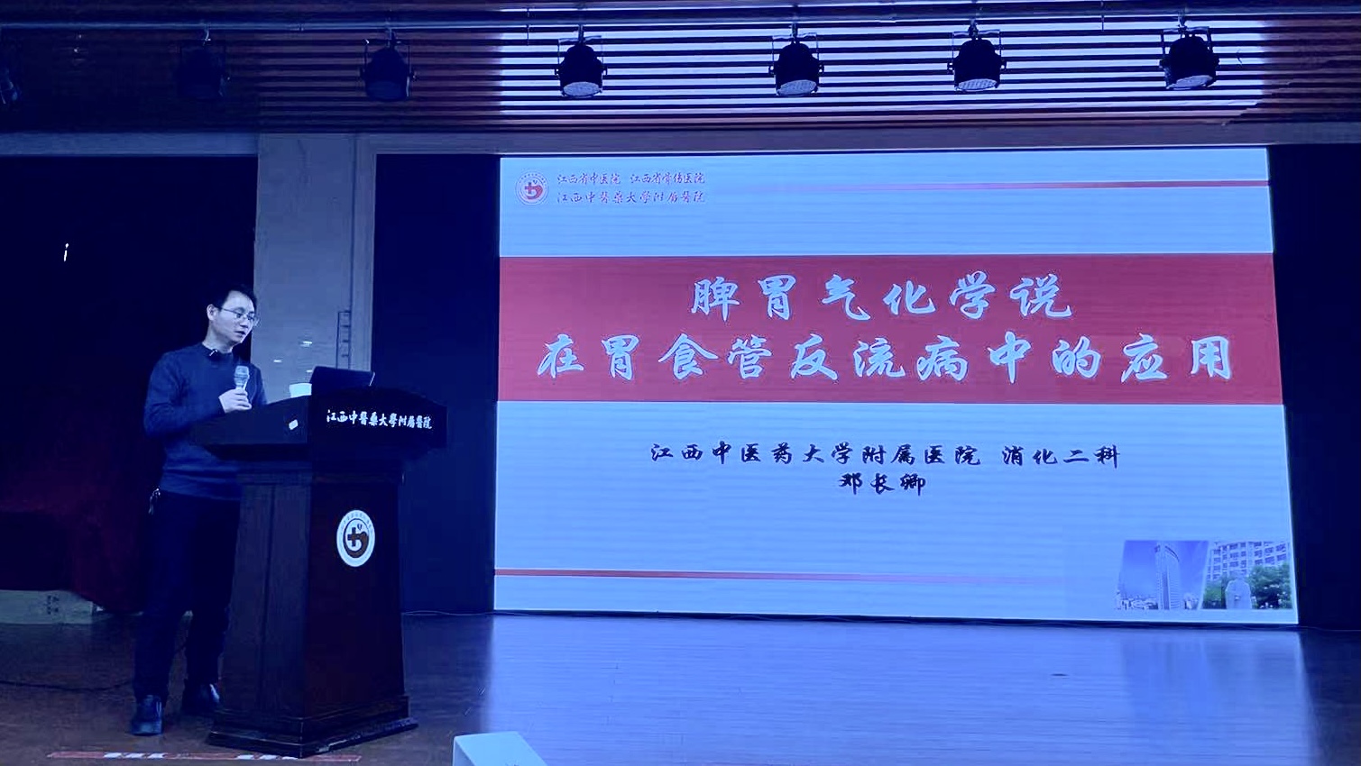 论坛特邀我院脾胃肝胆病科副主任邓长卿作专题报告。邓主任师承张小萍教授,深谙张小萍脾胃气化学说之精髓,尤其在胃食管反流病的诊治方面积累了丰富的临床经验。他以“脾胃气化学说在胃食管反流病中的应用”为主题,深入浅出地阐述了张小萍脾胃气化学说的核心思想,并结合大量临床案例,详细解析了该学说在胃食管反流病辨证论治中的具体应用。邓长卿强调,胃食管反流病的病位虽在胃,但与肝、脾功能关系密切,其基本病机为脾胃气机升降失常,导致胃气上逆。治疗上应以调理脾胃气机为核心,注重疏肝理气、和胃降逆,并根据患者个体差异灵活运用中药方剂,临床疗效显著。