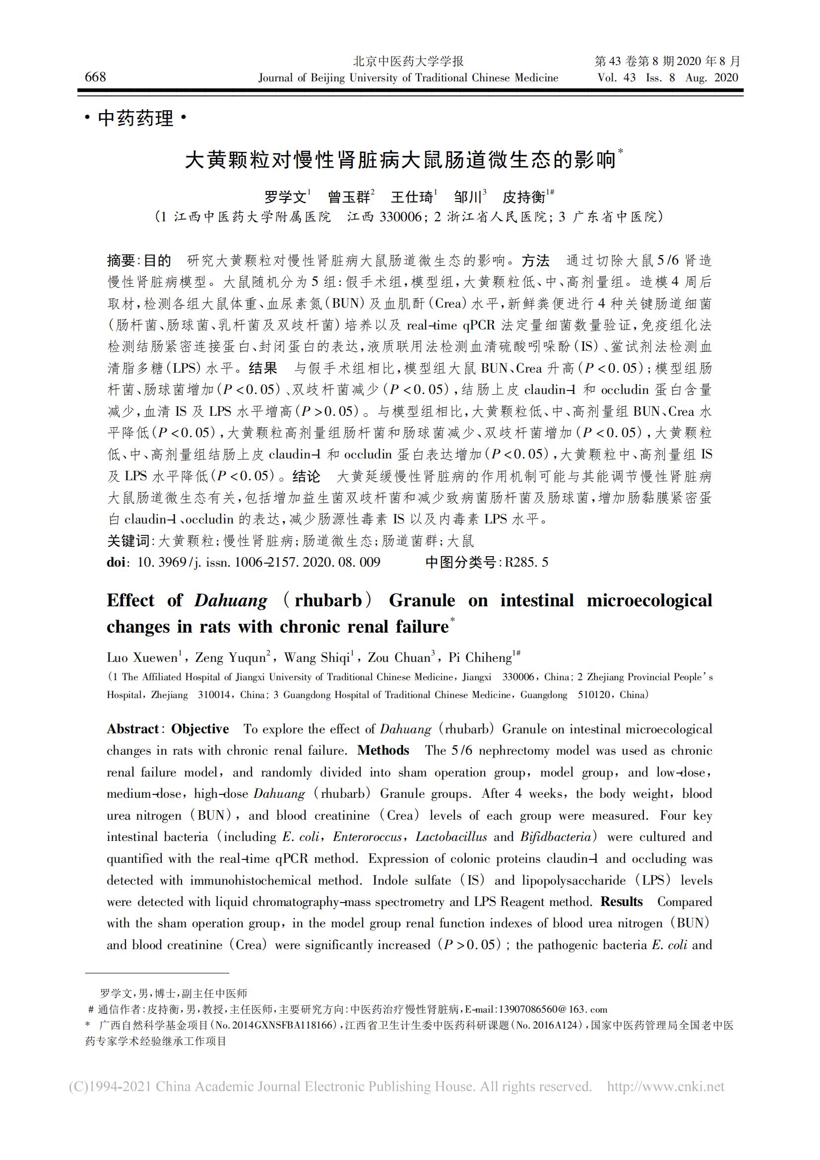 大黄颗粒对慢性肾脏病大鼠肠道微生态的影响