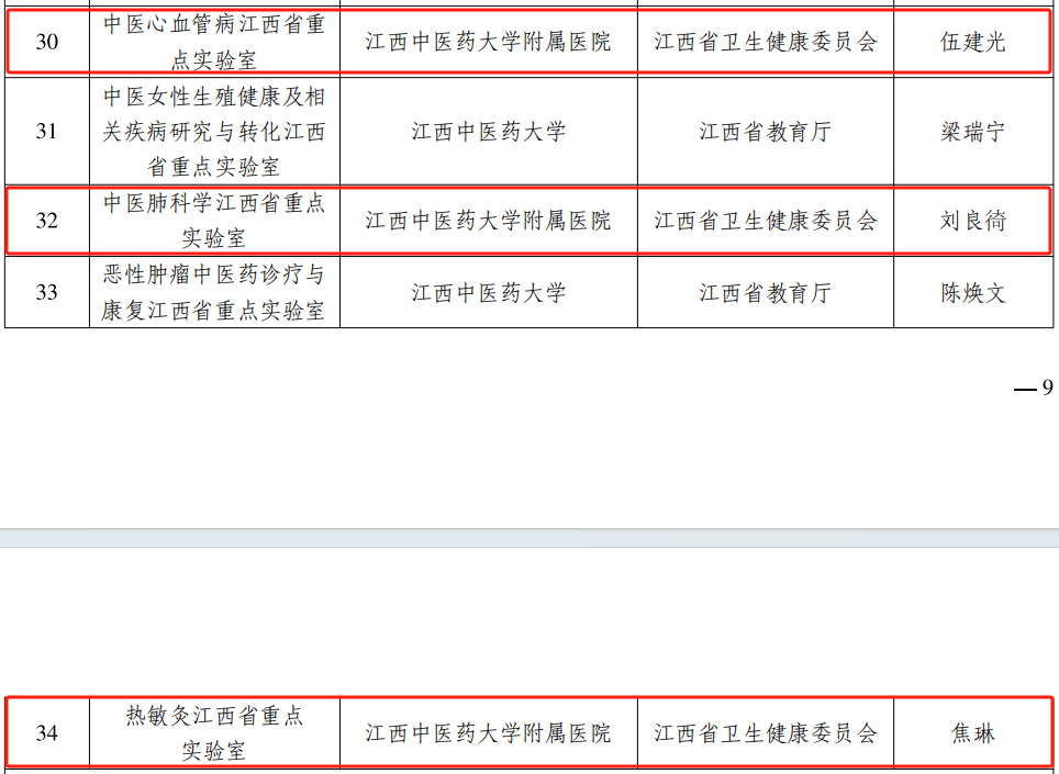 2024年4月16日,根据江西省科技厅《关于印发江西省重点实验室优化重组方案的通知》和《关于组织材料、医疗卫生、生物医药领域省重优化重组申报工作的通知》要求,经组织申报、形式审查、专家评审、现场考察、诚信审查、会议审定、公示等程序,江西省科技厅批复我院建设“中医肺科学江西省重点实验室”(刘良徛)、“热敏灸江西省重点实验室”(焦琳)和“中医心血管病江西省重点实验室”(伍建光)。据悉,此次批复组建的江西省重点实验室有72个,其中医疗卫生领域34个。