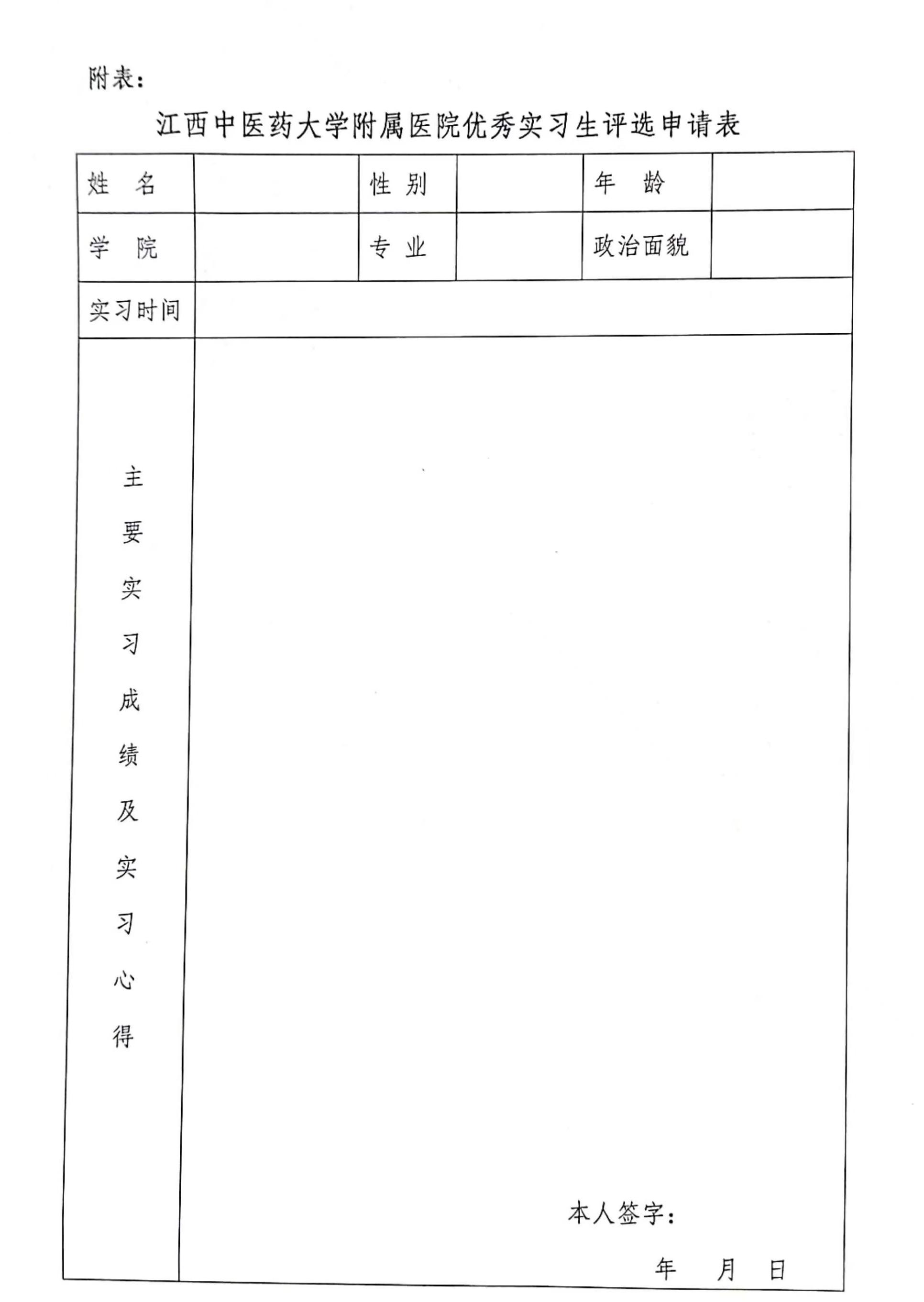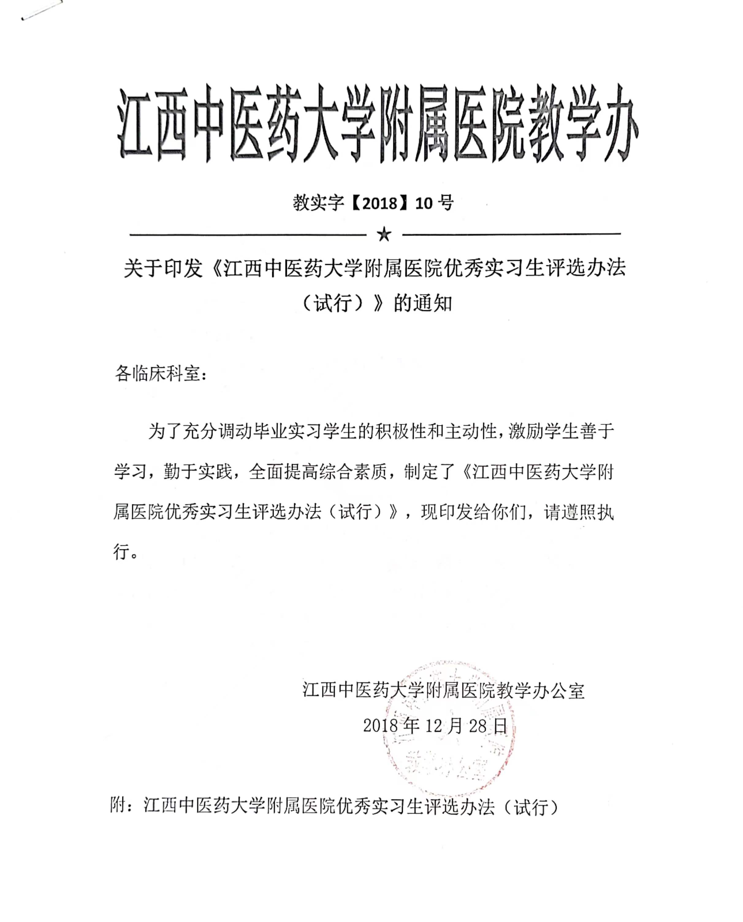 关于印发《江西中医药大学附属医院优秀实习生评选办法(试行)》的通知