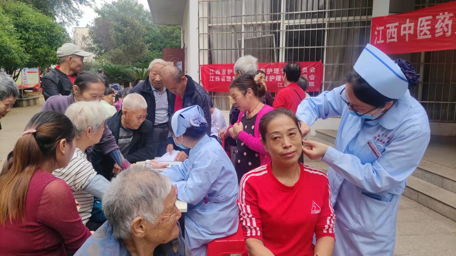农历九月初九是重阳节,为弘扬中华民族爱老、尊老、敬老的传统美德,10月14日上午,江西中医药大学附属医院灸疗第三党支部、江西省护理学会中医护理专业委员会组织临床、康复、护理专家来到大桥社区开展“重阳敬老爱老”义诊活动,免费为老年人提供问诊、测血压、中医推拿、耳穴压豆等,活动吸引了许多社区居民前来咨询。