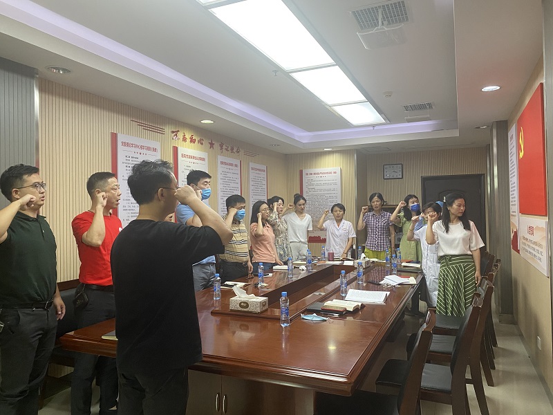 7月1日下午,机关后勤党总支第四党支部为庆祝党的生日,组织党员重温入党誓词,支部书记陈硕臻主持并领誓,全部支部党员面向党旗列队站立,跟诵入党誓词。重温入党誓词后全体党员还共同学习了《中国共产党章程》第八章-第十一章、《中国共产党廉洁自律准则》、《中国共产党党内监督条例》等党章党规党纪内容。