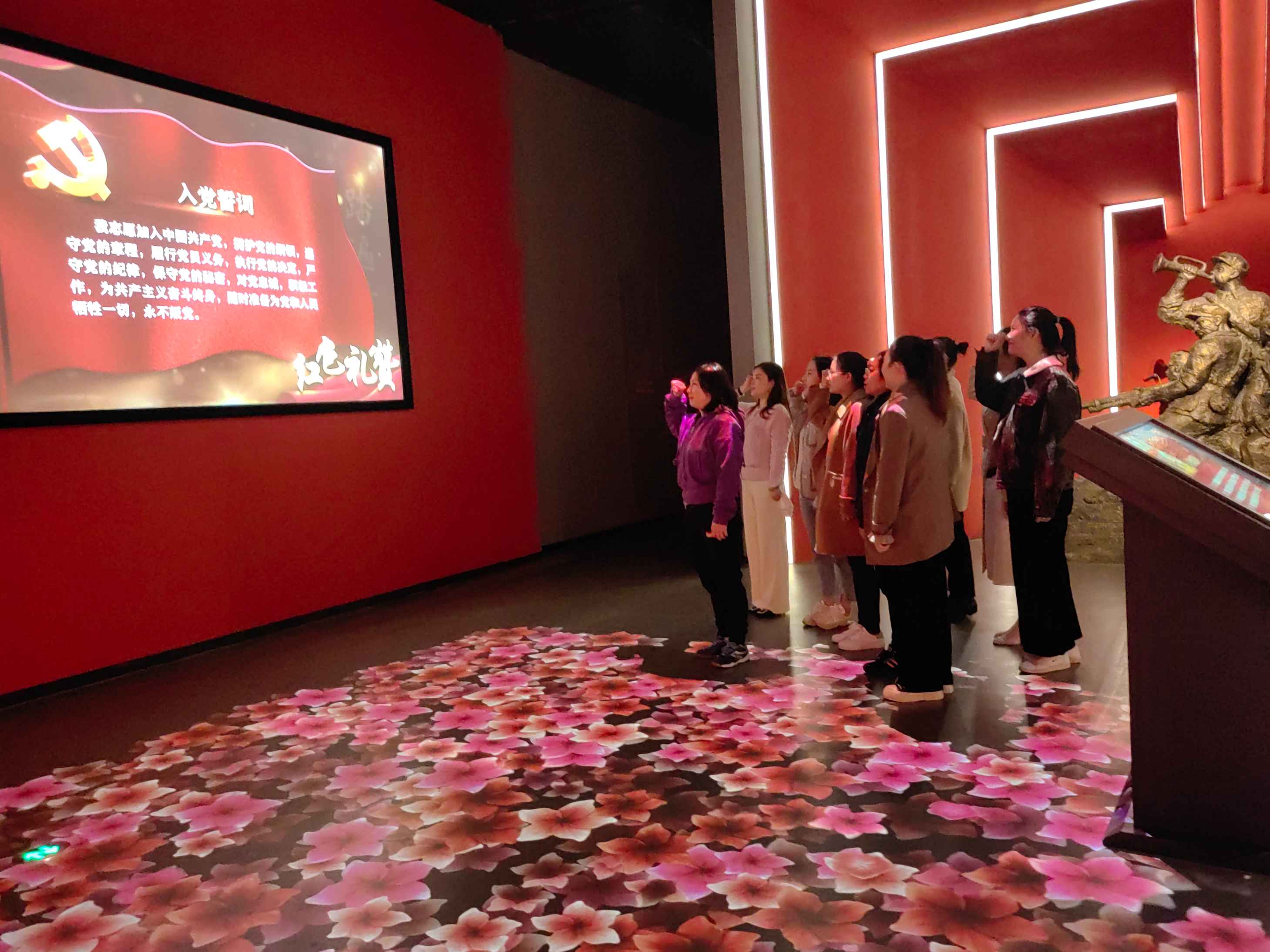 馆内,一件件珍贵的革命文物、一片片革命历史遗迹,一帧帧历史还原视频……讲述着这片红色土地上一个个感人的故事,追溯中国共产党领导江西人民的革命斗争史和共产党人的初心和使命。大家纷纷感慨当今的和平生活是烈士们用鲜血换来的,应当珍惜当下这来之不易的生活,好好工作。在疫情期间,更要向烈士们学习,奋勇在前线,打赢这场没有硝烟的战争。戈阳华书记在馆内,还带领着党员及积极分子重温入党誓词。所有党员和积极分子表示定当不忘初心,牢记使命。