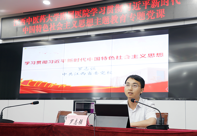 为了推进主题教育走深、走实,进一步加深全院干部职工对习近平新时代中国特色社会主义思想的理解,提高运用党的创新理论指导实践的能力。6月13日,我院邀请了中共江西省委党校罗志强教授来我院开展以“学习贯彻习近平新时代中国特色社会主义思想”为主题的专题党课。在家的院领导、各支部书记、副护士长以上中层干部出席聆听了党课。