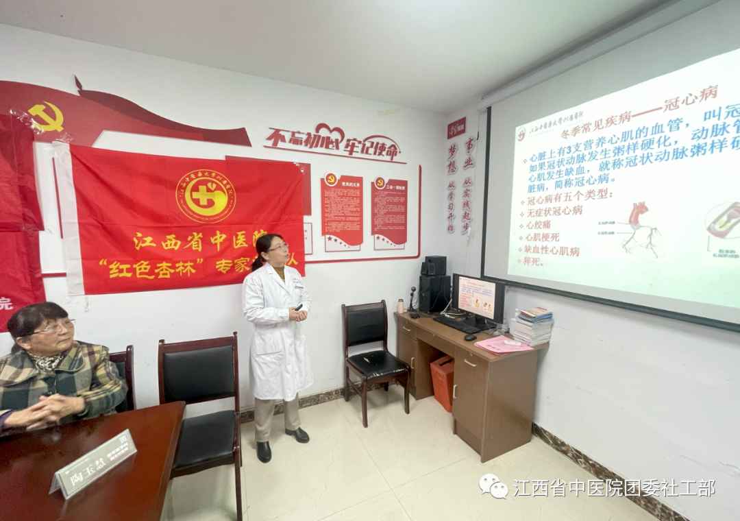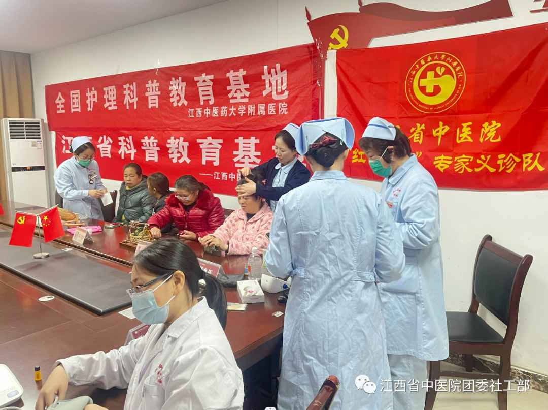 12月29号上午,我院团委组织老年医学科专家和全国护理科普教育基地、江西省护理学会科普教育基地(江西中医药大学附属医院)护理科普团队,一起走进西湖区幸福之苑社区开展“红色杏林”义诊活动。