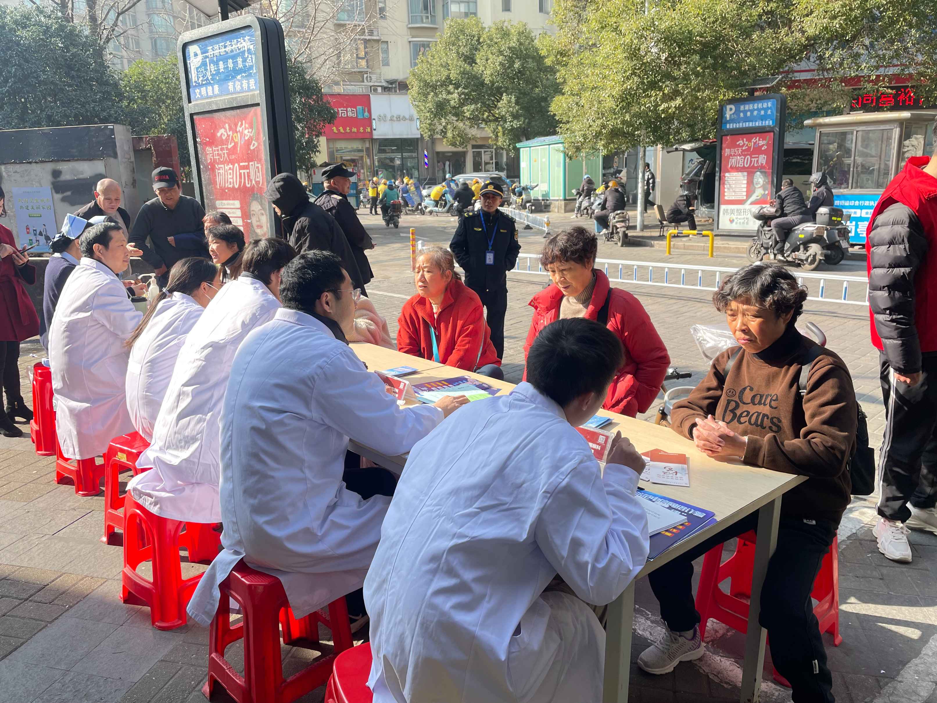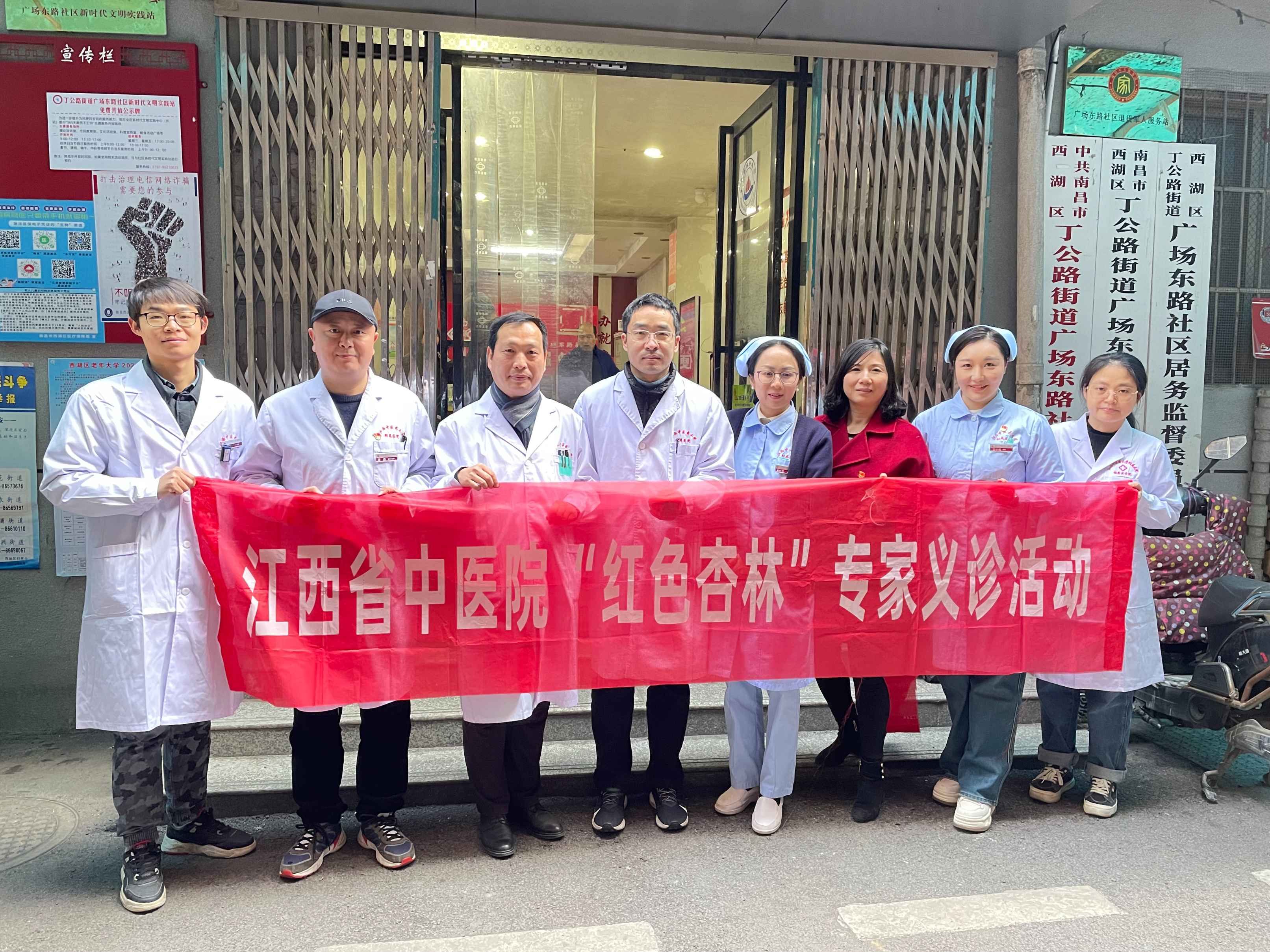 1月12号上午,我院团委组织青年医疗专家及护理团队,走进东湖区广场东路社区开展“红色杏林”义诊活动。