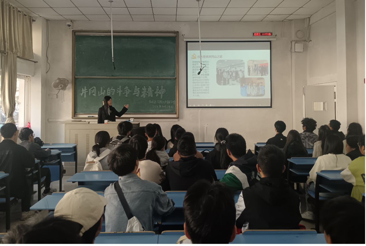 宣讲团成员们结合研学经历,从井冈山革命斗争的历史背景、主要事件和重要意义等方面向各团支部宣讲学习,讲述毛泽东同志和革命先烈们在井冈山斗争时期的艰苦生活和卓越贡献,引导同学们深刻领悟井冈山精神的丰富内涵和时代价值,感受革命先辈们艰苦奋斗的精神和坚韧不拔的斗志。同时,成员们还与大家分享了在井冈山研学期间干农活、访民情、制作红军餐等学习和活动经历,交流三湾改编情景式教学中的体验,《闪闪的红星》观影心得。