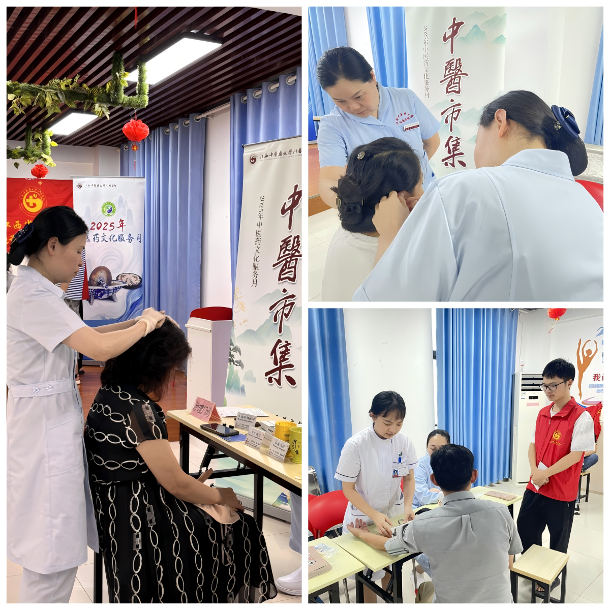 来自护理门诊的老师们则充分发挥我院的特色优势,开展了包括头部经络梳理、耳穴埋豆、温通刮痧等中医特色治疗,体验过的居民们无不对其独特的效果交口称赞,纷纷排队等候体验。