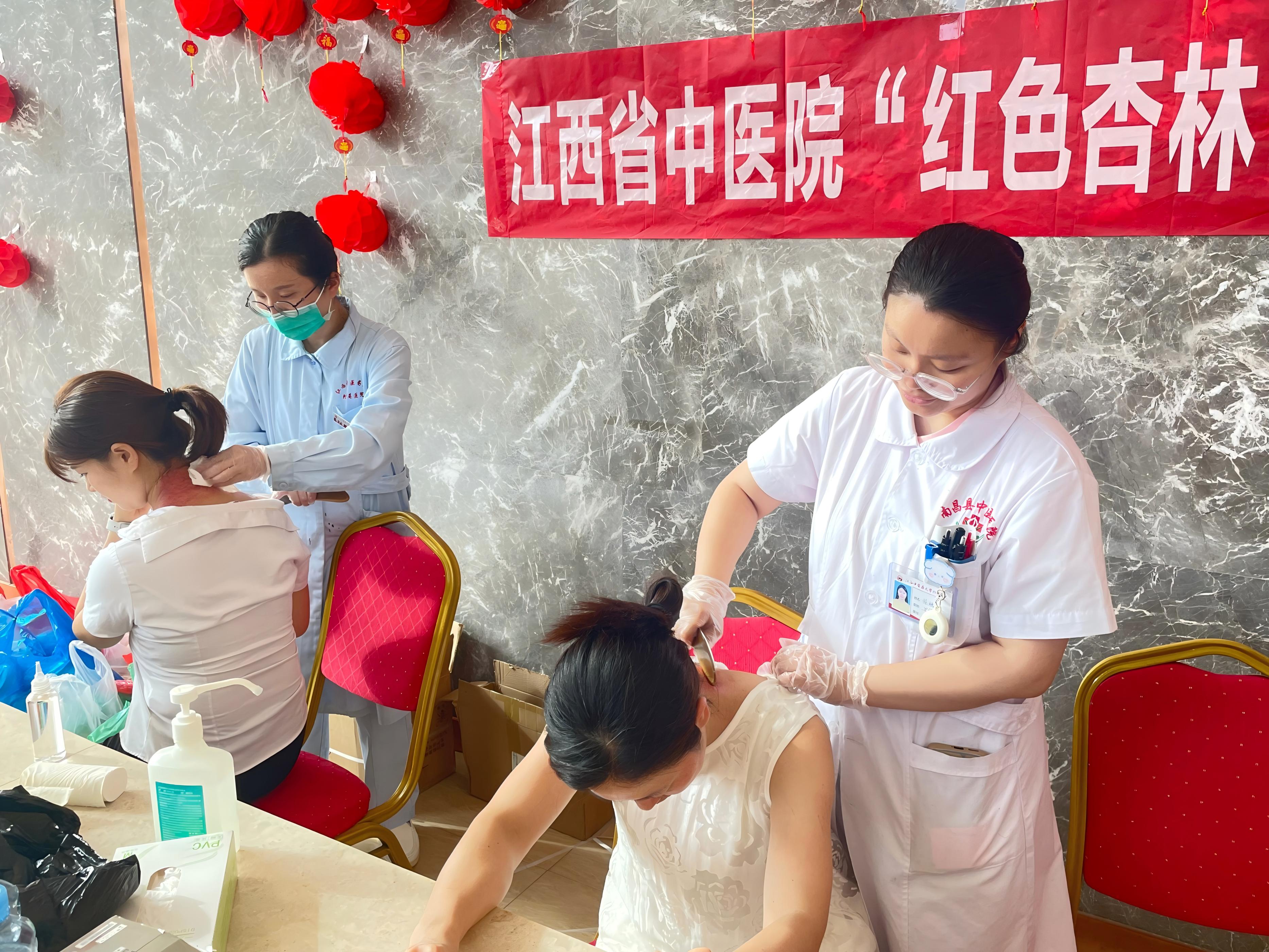 中医经典科护理团队则充分发挥我院的特色优势,开展了包括温灸刮痧、铜砭刮痧、耳穴贴压、头部经络梳理,耳部全息刮痧等中医特色治疗项目体验,体验过的居民们无不对其独特的效果交口称赞,纷纷排队等候体验。