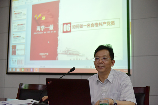刘中勇详细讲解了“两学一做”学习教育开展背景、目的、主要内容、总体要求、开展形式,并详细解读了习近平总书记系列讲话精神。
