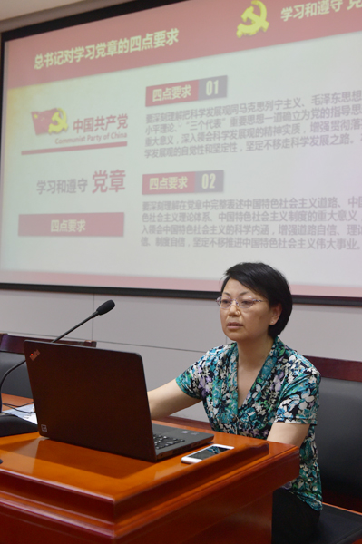 6月7日,机关党支部召开全体党员大会,党支部书记周菁菁同志就《认真学习党章,严格遵守党章》向全体党员进行辅导,党委副书记王秀玲以普通党员身份参加了会议。
