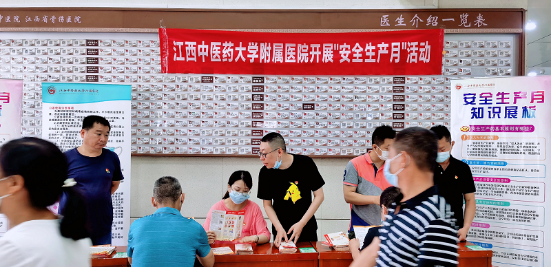 在全国第二十个“安全生产月”来临之际,江西中医药大学附属医院机关后勤第六党支部组织支部党员、职工于六月二十四日开展我为群众办实事,“安全生产月”宣传活动。