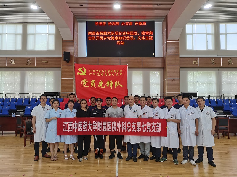 为深入开展党史学习教育“我为群众办实事”,7月11日上午,由我院外科七支部书记陈岗牵头,外科总支副书记李清萍及由骨伤二科、四科、五科、八科、十科组成的外科第七党支部,并邀请儿童骨科,前往赣青突击队及南昌市应急救援特勤大队,开展“我为群众办实事,做人民满意的白衣天使”义诊志愿服务活动。