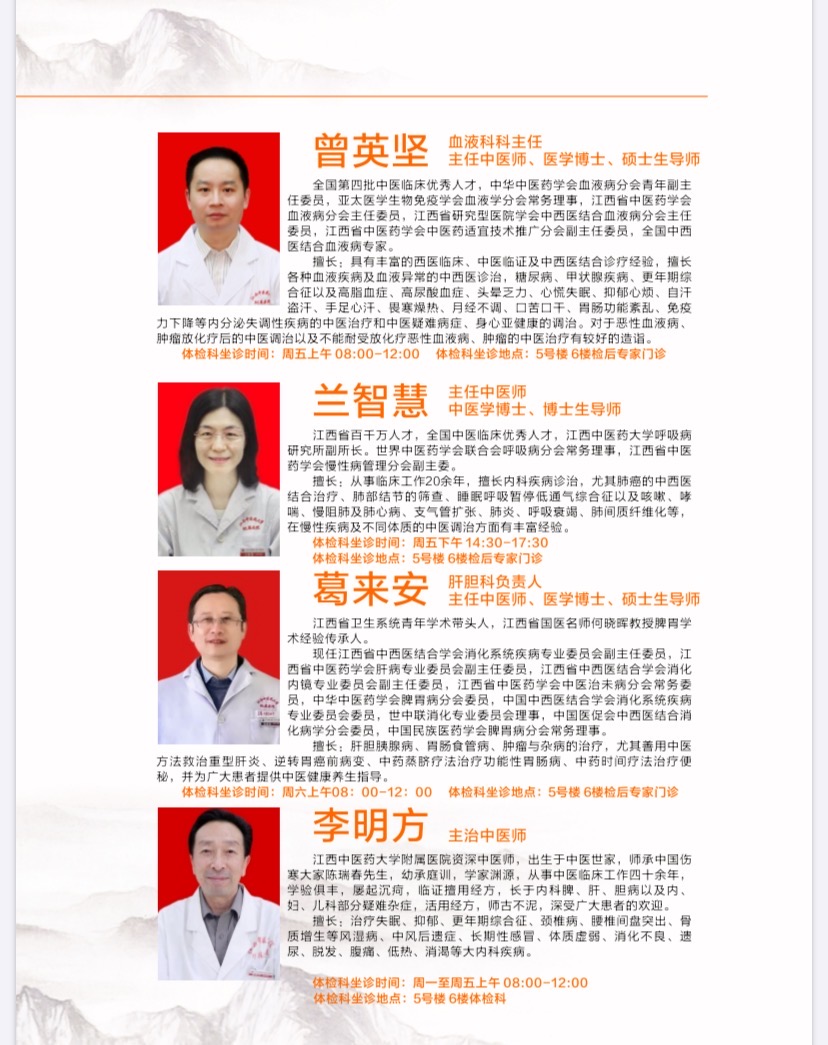 今年6月起,我院体检科健康体检实现全面升级,充分发挥医院医疗技术优势,开设检后专家门诊,邀请权威、专业、临床经验丰富的副主任医师以上职称的临床专家坐诊,倡导“权威、专业、准确、价廉”的服务理念,为体检人员提供温馨、细致的人性化服务,搭建了集咨询、检查、诊断、治疗、保健、养生于一体的体检服务新模式。