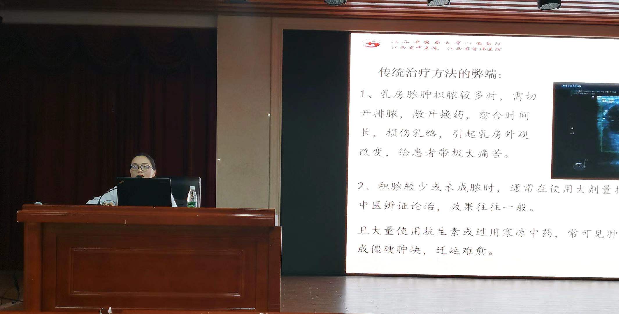 郭医师采用理论与临床实例相结合的方式,重点讲述了其导师浙江省中医院楼丽华教授的“温通法治疗乳痈”的理论依据及具体的临床应用。她还指出:“急性乳腺炎预防大于治疗”,分别讲述了妊娠期、哺乳期及婴幼儿离乳阶段如何进行调护及保健,避免乳腺炎的发生。