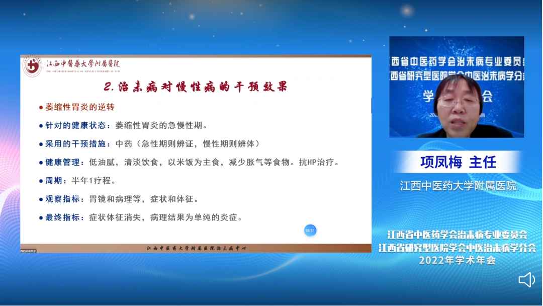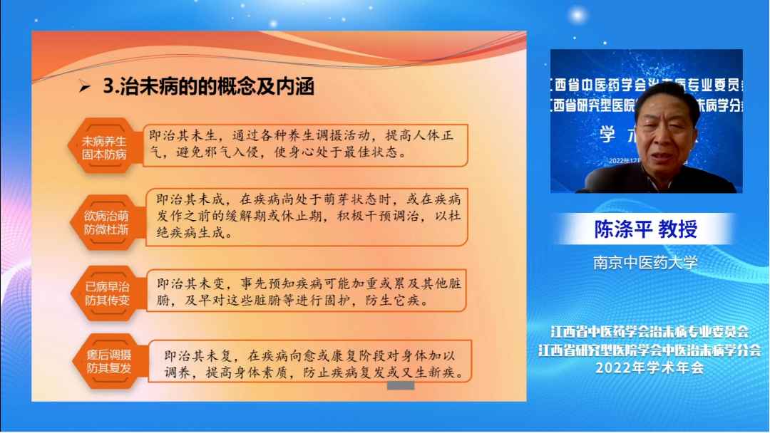 开幕式结束后 ,举行了江西省中医药学会治未病专业委员会2022年学术年会暨江西省研究型医院学会中医治未病学分会2022年学术会议。此次大会邀请了国内省内学术大家为大会授课。