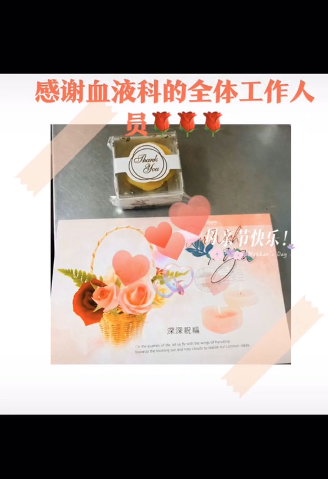 5月10日上午,为了让住院的母亲患友们感受到更多的关爱,并在科室内营造温馨的母亲节氛围,传播感恩母亲的美德,血液科的护士美眉们带着精美的小礼物和祝福贺卡,走到病床边向每位住院的母亲送上暖暖的节日祝福。一句句贴心话,一声声暖心语,一片片祝福情,让在院的母亲们感到了浓浓的温暖和关爱,也让她们对这份来自医院和科室的特殊关爱感到无比的欣喜和感动,其中19床的万女士为表达对医护们的感激,还悄悄制作了一段超暖心的小视频送给血液科的医护们。