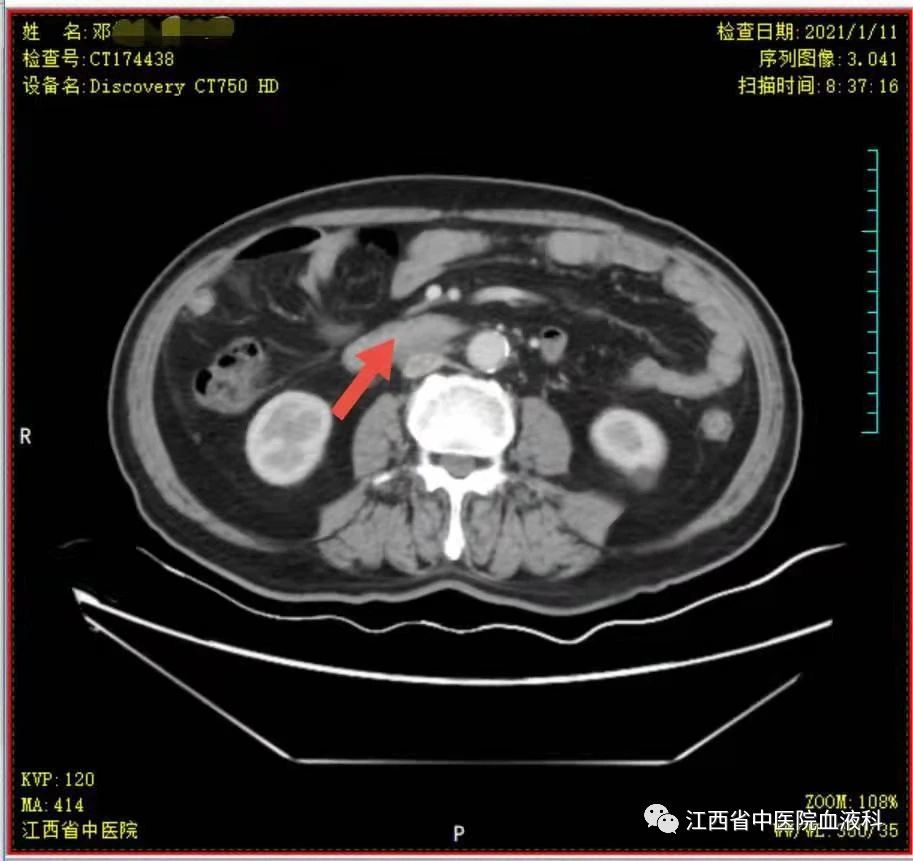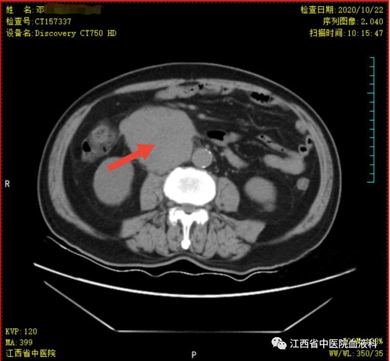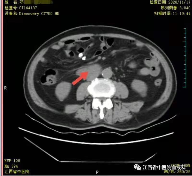 2020年10月中旬邓大爷在家人的陪同下来我科就诊,全腹部增强CT提示:右侧睾丸切除术后复查:1.腹膜后(胰头后下方)、双侧肾上腺区团块状异常强化影。2.肝左内叶上段小囊肿,双肾小囊肿,较前相仿。3.右侧腹股沟前方、皮下条索、小片影,境界不清,较前减小,拟为术后改变。4.右下腹腔少许钙化淋巴结,较前相仿。因病情危急,考虑邓大爷高龄、体能差、窦性心动过缓(平均心率50次/分)心脏功能差等情况,经讨论于2020-10-24起第一次行减剂量方案R-miniCHOP(利妥昔单抗700mg d0、环磷酰胺700mg d1、多柔比星40mg d1、长春瑞滨20mg d1、地塞米松10mg d1-5)方案。第一次化疗后评估病情,腹腔瘤体缩小了2/3,取得了很好的治疗效果,可邓大爷心脏却亮起了红灯,经过了积极护心等支持治疗后,大爷心脏功能有所恢复。遂于2020-11-19、2020-12-10行2次R-miniCOP方案(去除了具有心脏毒性的多柔比星),三次化疗结束后予评估病情,提示腹腔包块明显缩小,淋巴瘤病情有所好转。