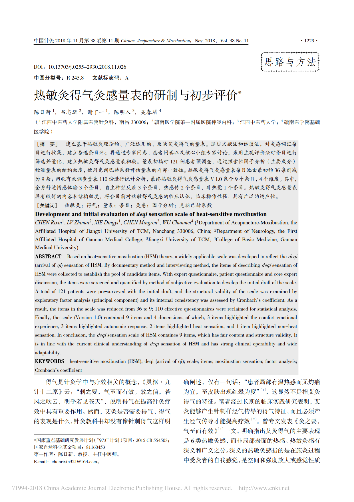 【学术】陈日新:热敏灸得气灸感量表的研制与初步评价