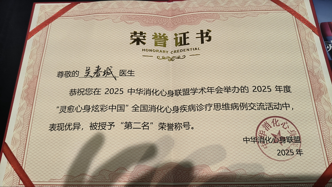 全国消化心身疾病病例思维分享比赛二等奖花落我院
