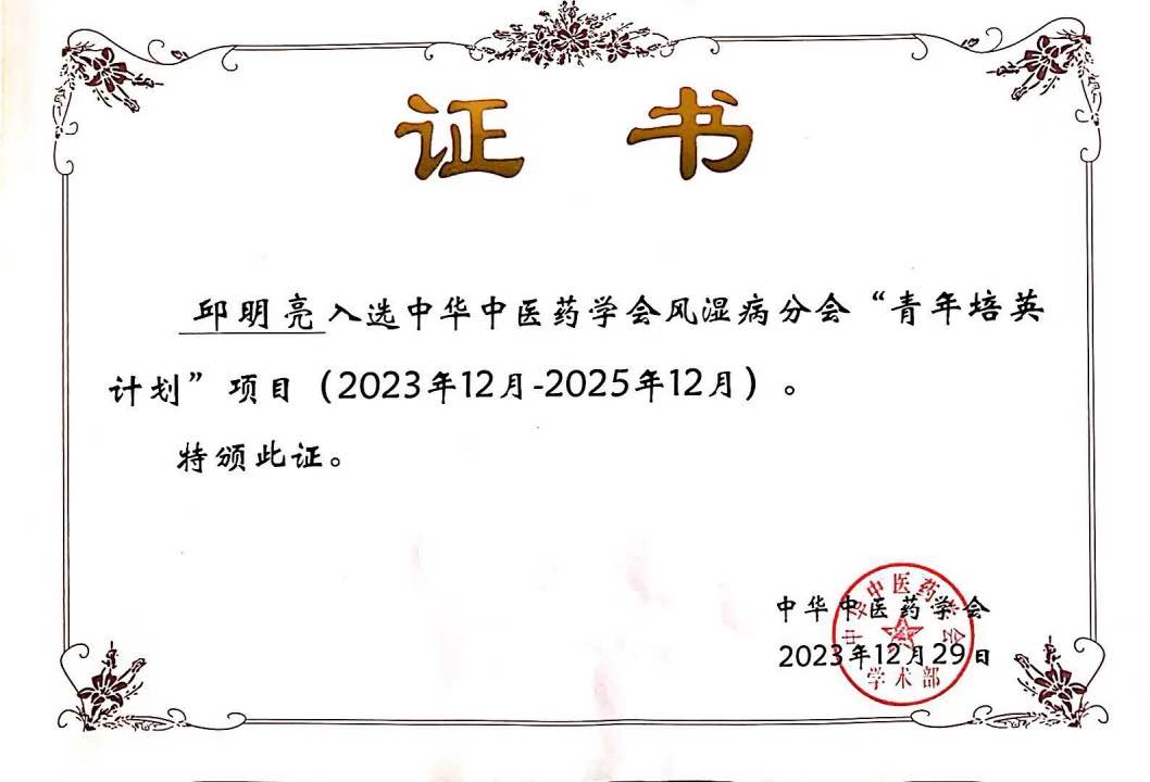 热烈祝贺江西中医药大学附属医院(江西省中医院)风湿病科副主任邱明亮入选首届中华中医药学会风湿病分会“青年培英计划”