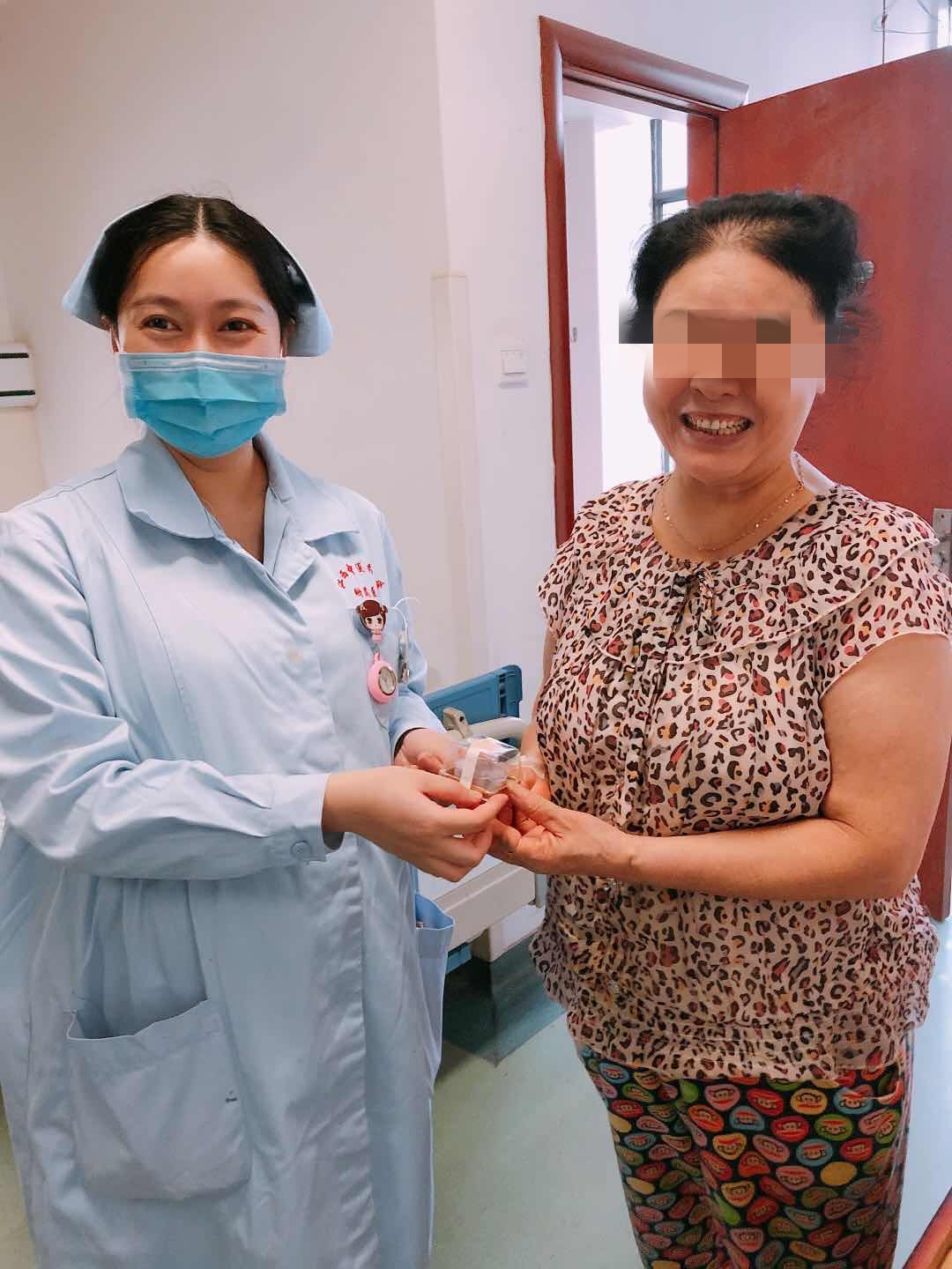 月饼做好后,医护人员们在饶菊芳护士长的带领下一起去病房为每位就诊的患者和家属送上了精心制作的月饼和节日的祝福,“您好,我们代表医院给您送月饼来了,祝您中秋节快乐,早日康复!”同时嘱咐患者们要注意身体,祝他们早日恢复健康。