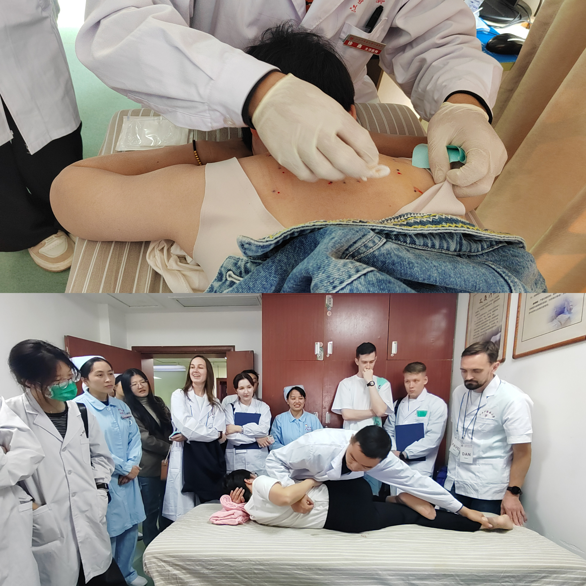 期间我科徐鑫医生讲授了科室中医特色疗法,并演示了小针刀疗法、中医正骨疗法、中医推拿等手法。俄罗斯代表团希望通过此次交流,近距离感受传统中医疗法在运动医学领域的魅力。