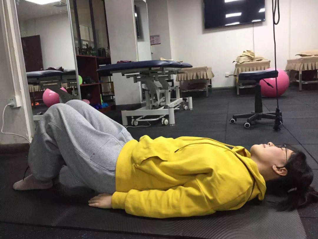 双腿曲膝仰卧并放松,把手放在腹部,手指并拢掌心朝向脸部,手指尖对准肚脐上方;然后吐气并将头肩慢慢抬起,然后指尖往腹部压下去;如果手指中间出现深沟,手指似乎可以向下插入腹腔的,那就说明存在腹直肌分离;同时这样还可以用手指宽度评价分离距离。若感觉不到挤压,将手指向两边挪动,直至找到紧张的肌肉,测量两侧肌肉的距离。